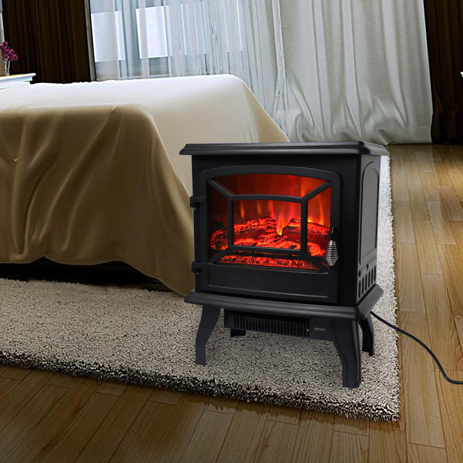 The exterior design has elements of both modern and traditional styling, so it fits well into most decorations. Its size is right for many locations, the glass viewing location is crystal clear, large and unobstructed. Its dual heat modes allow it to operate with or without emitting heat, allowing you to turn on the flames to add ambience to a room without adding heat.